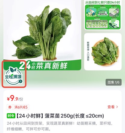 以餐桌常见且农残风险较高的菠菜为例,京东七鲜“24小时鲜菠菜苗”的全程溯源界面,明白标注其泉源为天津武清优良菠菜种植,采收取加工现场照片,更能精准核查所购批次蔬菜的全链农残检测演讲——从采收后的初检,到仓储入库的复检,再到门店上架前的终检,三轮严酷检测的演讲全程公示,构成环环相扣的平安闭环。同时,运输体例、配送及到店日期等环节畅通消息同步呈现,完全打破生鲜畅通的“消息黑箱”,让消费者实正“盘西餐来时”,买得、吃得安心。